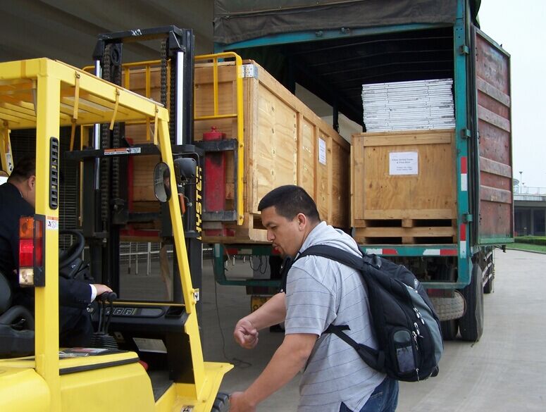 4、最后將風(fēng)淋室裝訂于木箱中,用吊車(chē)叉起送入運(yùn)輸工具去。