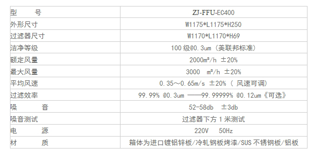 ZJ-FFU-EC400型號FFU技術(shù)參數(shù)