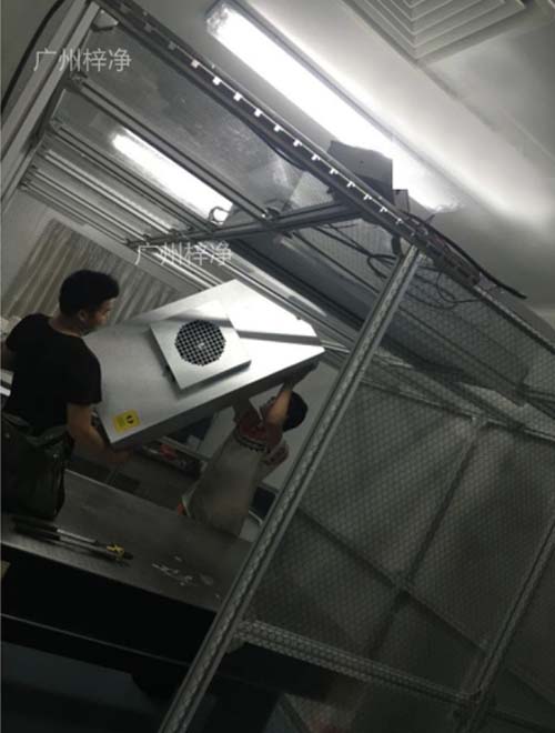材料以鋼方通噴塑作為框架,采用風(fēng)機(jī)濾網(wǎng)機(jī)組FFU送風(fēng),凈化棚四周圍用防靜電垂簾,頂部鋪蓋密縫盲板,形成一個密縫區(qū),內(nèi)部凈化級別可達(dá)10—100000級;特別適用于車間內(nèi)局部凈化級別要求高的區(qū)域,如流水線作業(yè)區(qū)域。高精確度產(chǎn)品組裝區(qū)。