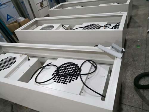 FFU風(fēng)機(jī)過(guò)濾單元以自循環(huán)過(guò)濾送風(fēng)方式,將靜壓室的干凈空氣經(jīng)過(guò)高效過(guò)濾、除味、殺菌處理送入凈化工作間,根據(jù)其送風(fēng)量的多少,使凈化間內(nèi)的空氣塵埃粒子控制在一定的范圍內(nèi)。