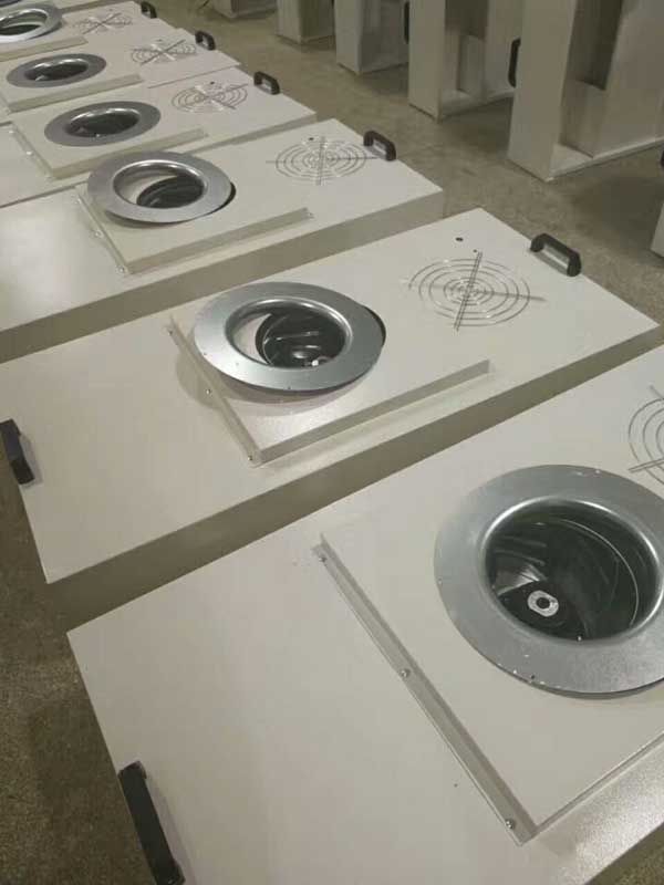 ffu是一種自帶動(dòng)力、具有過濾功能的模塊化末端送風(fēng)裝置。風(fēng)機(jī)從ffu頂部將空氣吸入并經(jīng)過HEPA(高效過濾器)過濾,過濾后的潔凈空氣以0.45m/s±10%的風(fēng)速均勻送出。ffu廣泛應(yīng)用在光電行業(yè),精密電子,液晶玻璃,半導(dǎo)體等領(lǐng)域的千級無塵室或百級潔凈室。