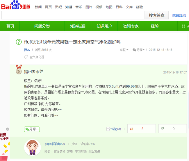 試問:ffu風機過濾單元效果就一定比家用空氣凈化器好嗎?