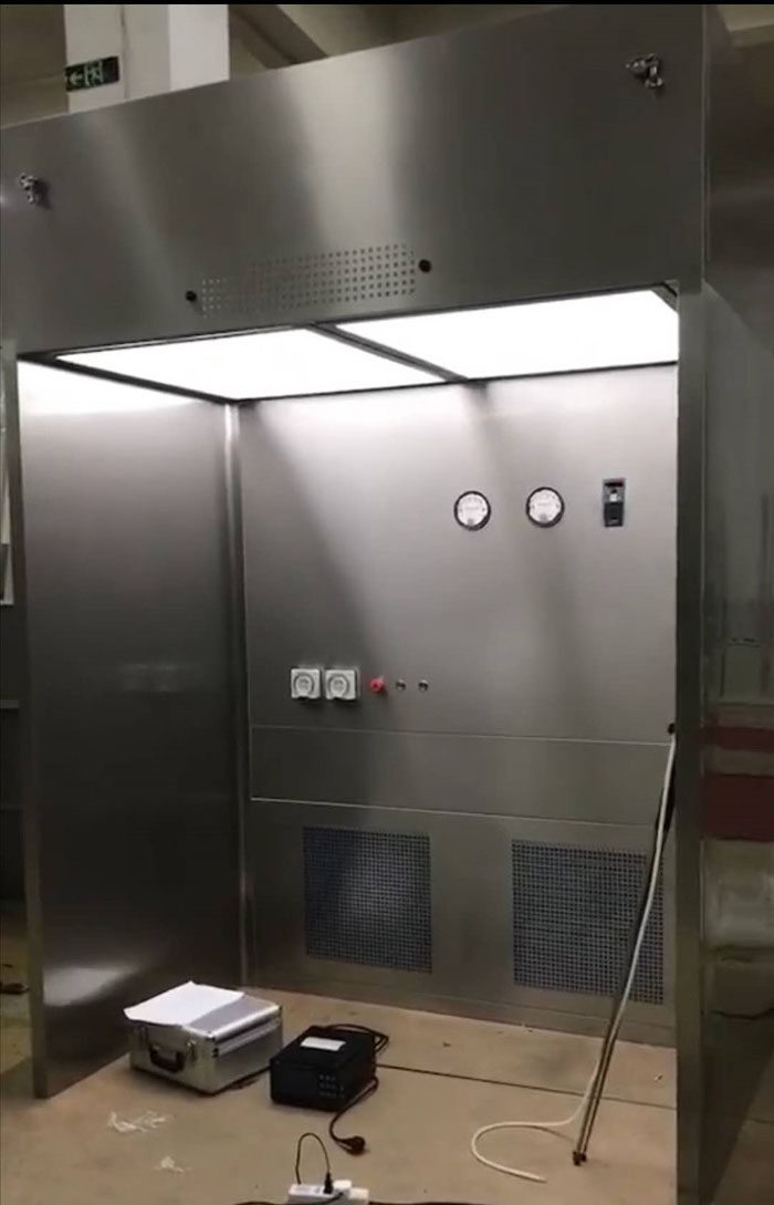 稱量罩采用304不銹鋼,工作區(qū)域墻板選用不銹鋼304(1.2mm厚,油拉絲短絲,墻板內(nèi)部圓弧角連接,無死角,保證工作區(qū)域的密封性和整潔美觀。采用模塊式設(shè)計(jì),現(xiàn)場組裝拆卸方便。負(fù)壓稱量罩由初效過濾器+中效過濾器+風(fēng)機(jī)箱高效過濾器+均流膜組成。稱量罩負(fù)壓采樣室由機(jī)箱、送風(fēng)高效過濾器、排氣高效過濾器、可變風(fēng)量風(fēng)機(jī)組、PLC控制系統(tǒng)和傳感系統(tǒng)等幾大部件組成。稱量罩機(jī)箱采用拉絲無指紋不銹鋼SUS304制作,鈑金一體折彎制作而成,美觀潔凈,易于清潔消毒。稱量罩(中心稱量室、稱重室)采用了可調(diào)風(fēng)量的風(fēng)機(jī)系統(tǒng)和不銹鋼風(fēng)速傳感器,通過調(diào)節(jié)風(fēng)機(jī)的工作工況,可使?jié)崈艄ぷ鲄^(qū)中的平均風(fēng)速保持在設(shè)定0.45m/s的范圍內(nèi)。