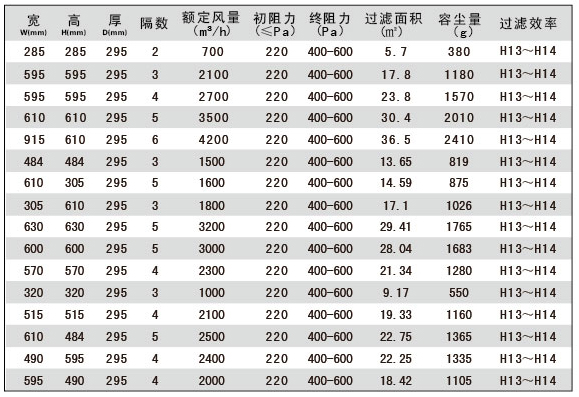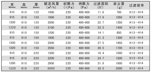 過濾效率:99.99%-99.995%(H13、H14) MPPS