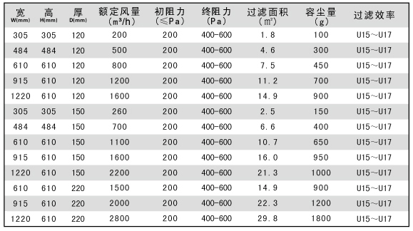 過濾效率:99.9995%-99.999995%(U15、U16) MPPS