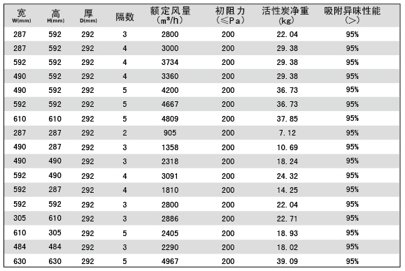 用戶選購指南-拋棄式一體化高效過濾器技術參數